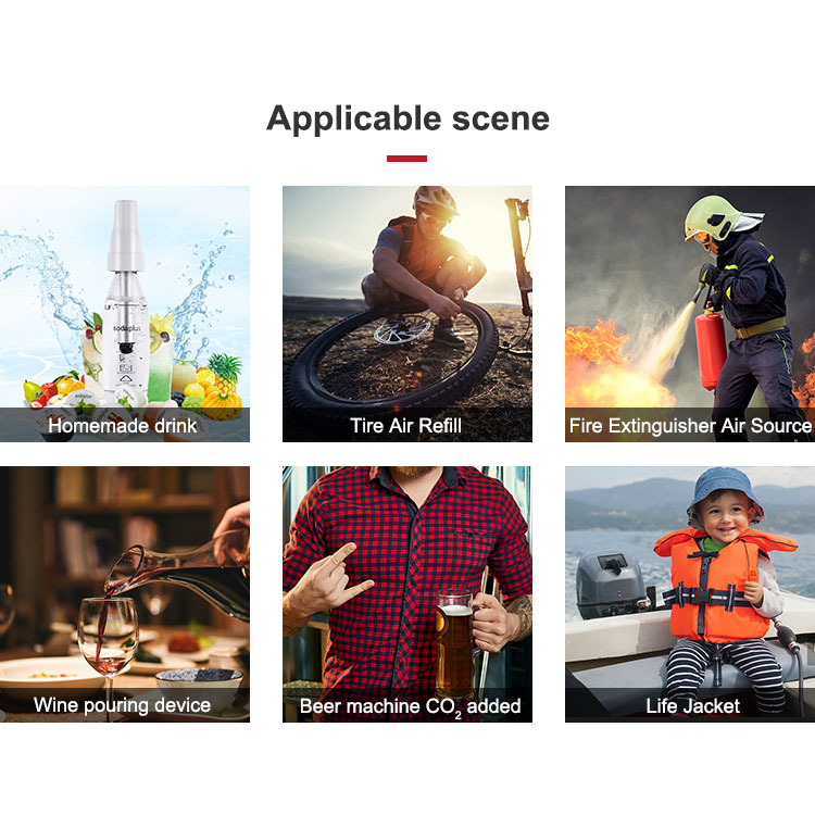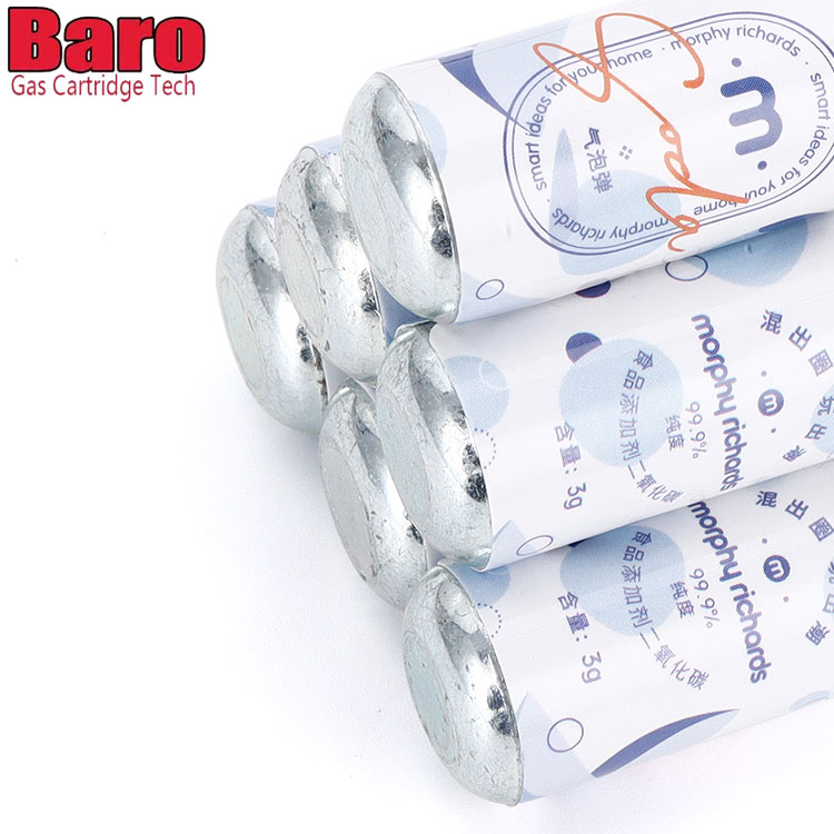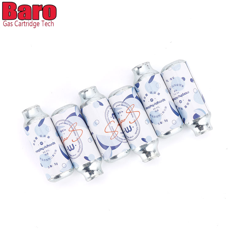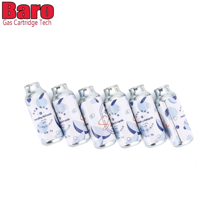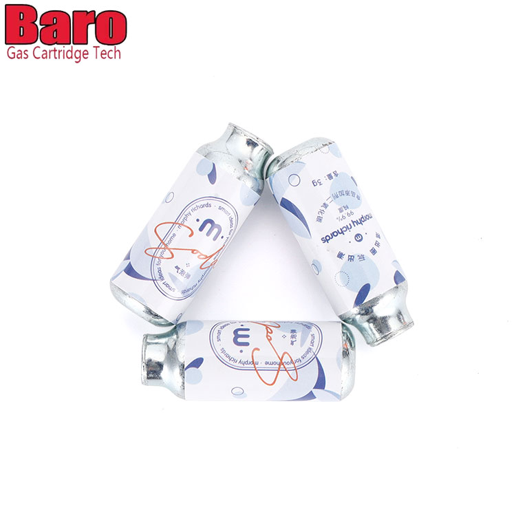 Täydellisiä 3g elintarvikelaatuisia hiilidioksidisylintereitä käytettäisiin soodan valmistukseen. CO2-patruunat ovat 100 % elintarvike- ja juomaturvallisia. Kaikki valmistamamme CO2-pullot ovat elintarvikelaatuisia. Jokainen sylinteri käyttää elintarvikelaatuista hiilidioksidia, joka on 99,9 % puhdasta.